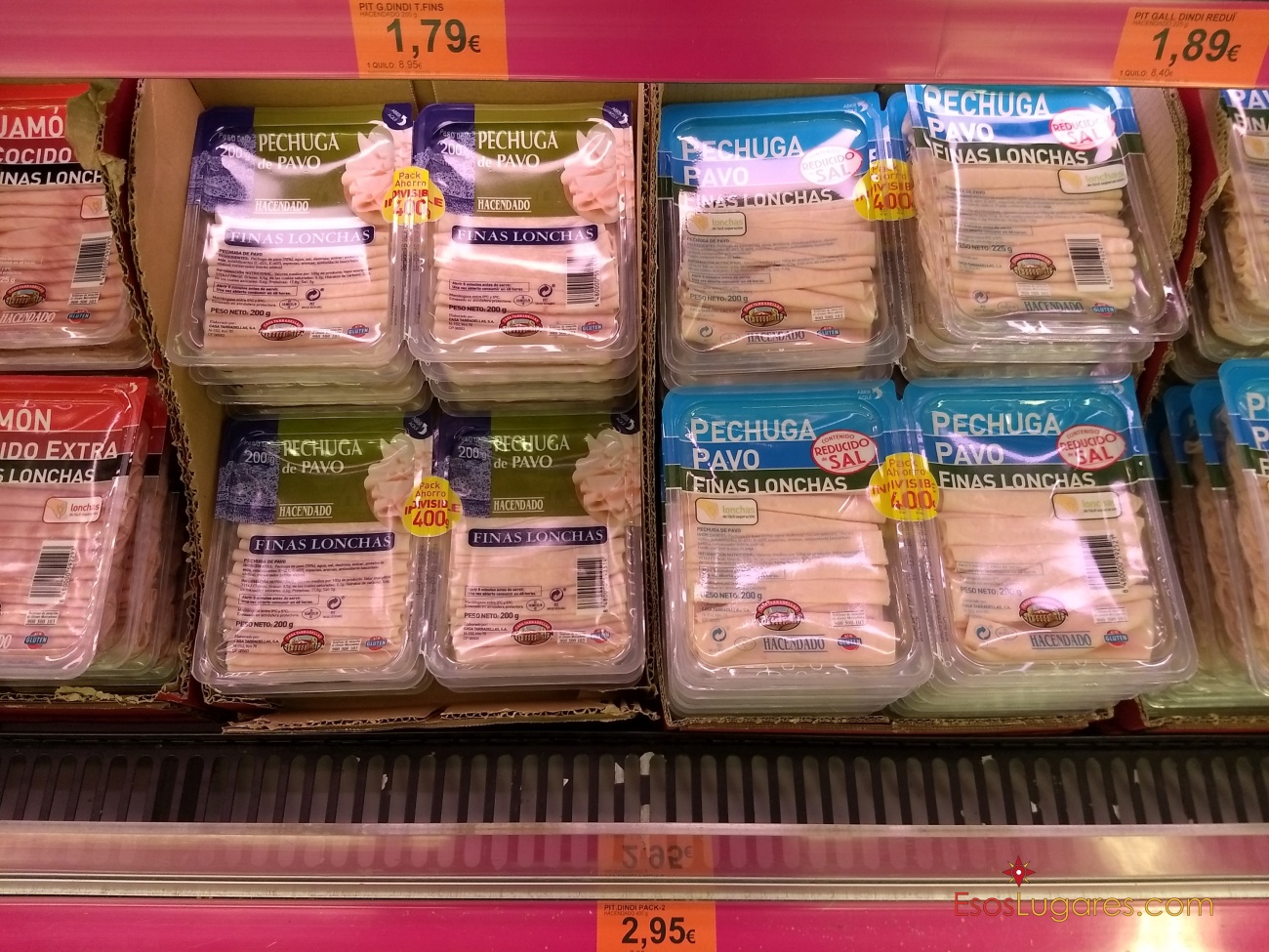 Llegamos a lo que muchos van a buscar en España. Desconozco la calidad en este caso, pero 120 grs de jamón serrano por € 2 está bien para salir del paso.