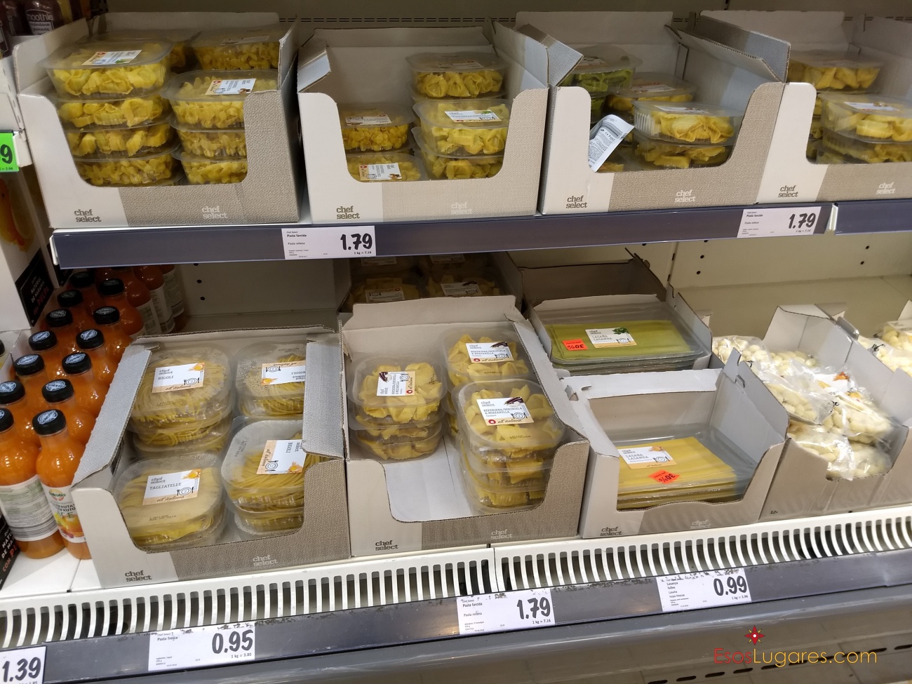 Ravioles, tortellonis y salsas. Los paquetes de 250 grs. calculo que serían justo para dos personas. Asi que por € 1,59 tortelloni + € 1,40 la salsa nos dá un almuerzo/cena por € 3.
