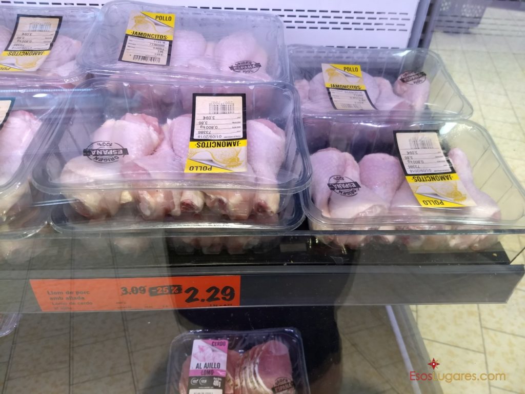 Patas de pollo € 3,68 el kilo.