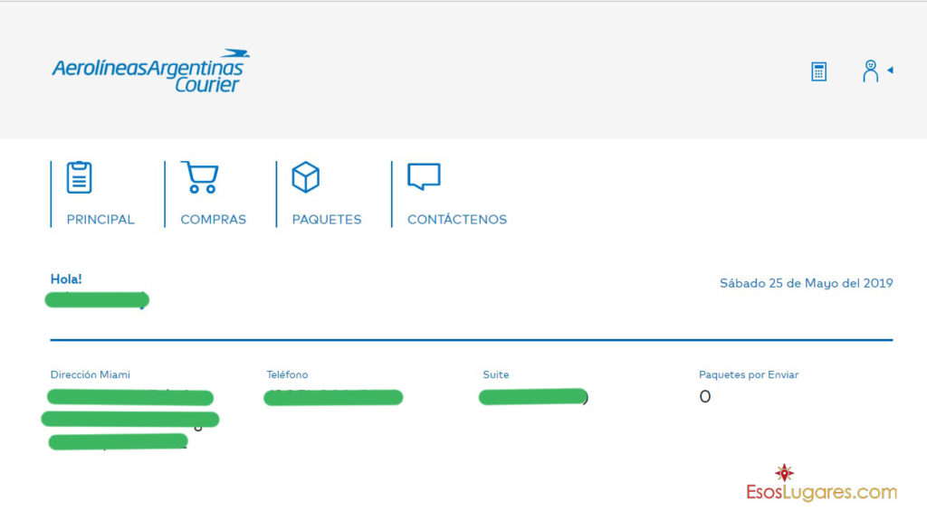Ya dentro de nuestra cuenta, lo primero que veremos es nuestra «dirección» en Miami, que es a donde tenemos que dirigir nuestras compras una vez que las realicemos.